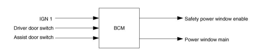3. Above (2) Driver door switch or Assist door switch in protest to the conditions when you OPEN, Safety Power window Enable and power window main output will be OFF immediately.