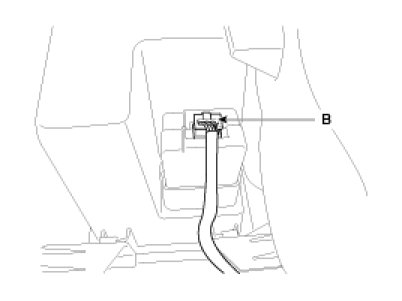 3. Disconnect the connector (B), then remove the fob holder assembly (A) after releasing the hook (C).