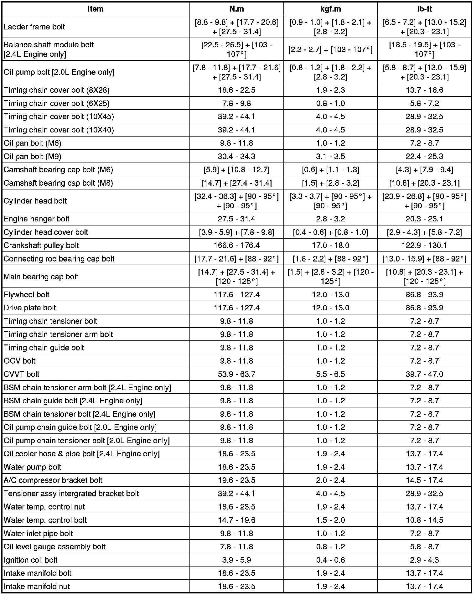 Tightening Torques