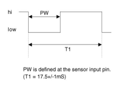 The Rain Sensor sends back to the BCM a pulse width modulated waveform with one distinct period (see diagram below):