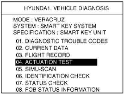 It will be able to diagnose defects of SMART KEY system with scan tool quickly. Scan tool can operates actuator forcefully, input/output value monitoring and self diagnosis