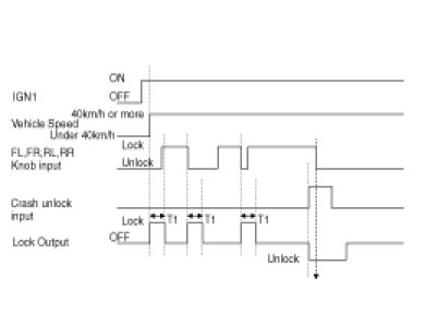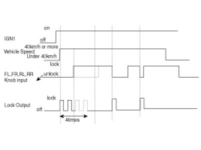 (3) if there is equal output command during output Priority order same Door lock/unlock, input ignore. if there is contrast output command during output Priority order same Door lock/unlock, input ignore and present output immediately discontinue and executes output that is inputted after 100 ms(except CRASH UNLOCK, Without waiting TIME 100 ms immediately action enforcement)