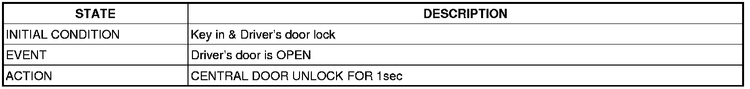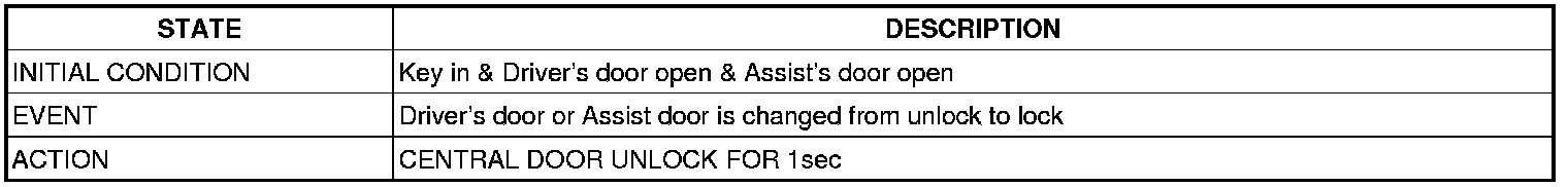 * At DR LOCK in POWER WINDOW SWITCH or CAN LOCK signal reception,With UNLOCK KNOB state independently Lock output Display during 0.5S ± 0.1 secs. At DR UNLOCK in POWER WINDOW SWITCH or CAN UNLOCK signal reception Offer an Unlock output during 0.5 ± 0.1 secs independently with UNLOCK KNOB state. (IGN 1/2 input disregard)