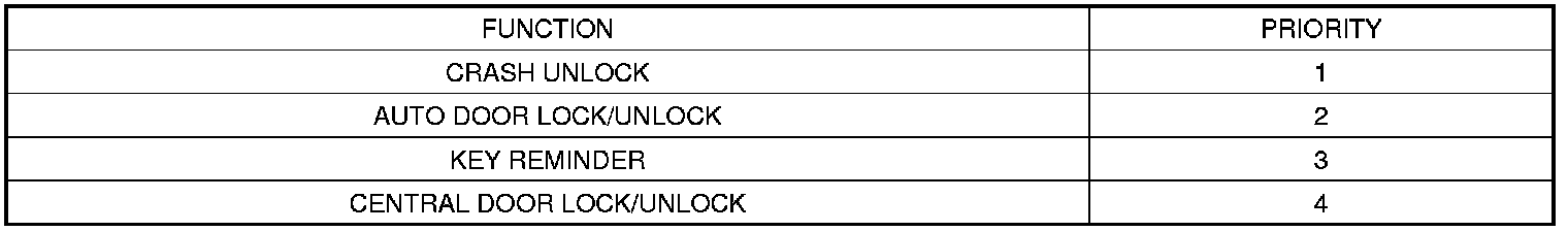 11. DOOR LOCK/UNLOCK FUNCTION PRIORITY ORDER