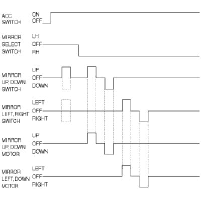 A. At the ACC ON state, if the mirror select switch in the SW ASSY P/WDW MAIN is the LH state and the mirror direction switches (UP, DOWN, LEFT, and RIGHT) are operated, then the mirror motor shall be drive to control the mirror to the desired direction.