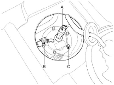 4. Remove the sub fuel sender from the fuel tank after unfastening the sub fuel sender installation bolts (C).