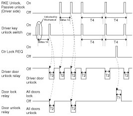 3. Within 4sec, if the unlock request from mechanical key, Passive Unlock at driver side at driver side is detected, outputs all doors unlock.