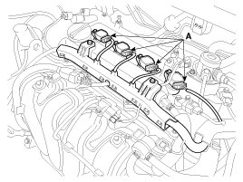 1. Disconnect the connectors (A) and then ignition coils (B).