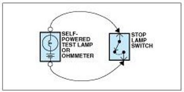 An ohmmeter can be used in place of a self-powered test lamp.