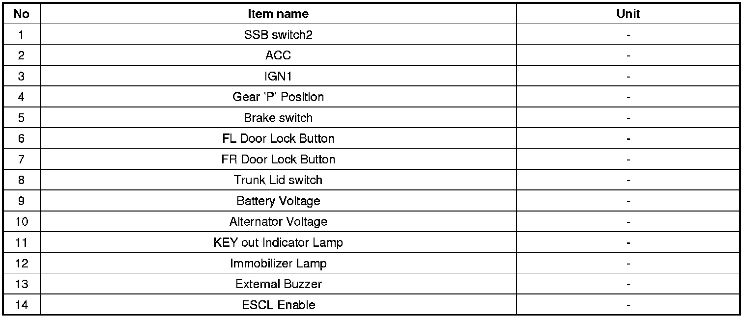 1. SMART KEY unit Input problem : switch diagnosis