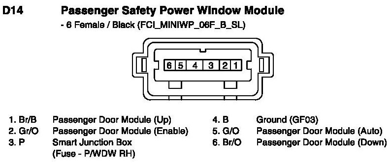 D14 Passenger Safety Power Window Module: