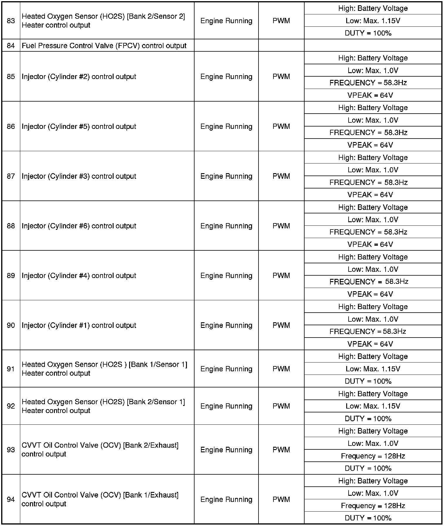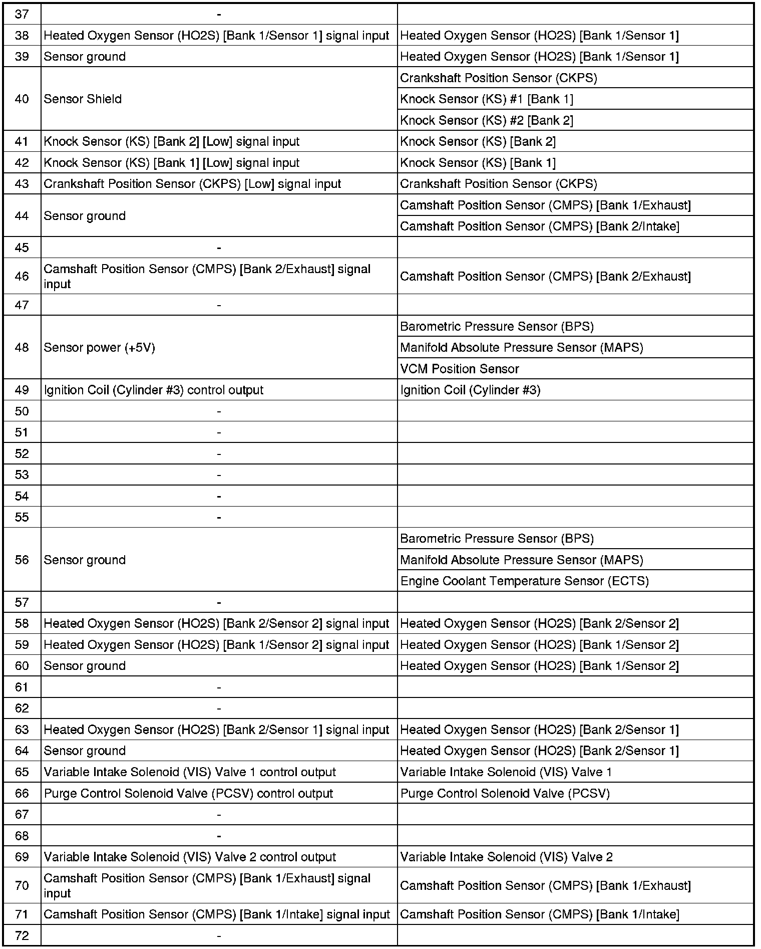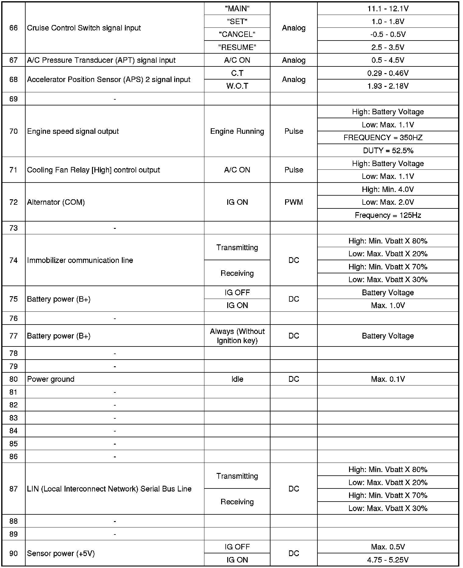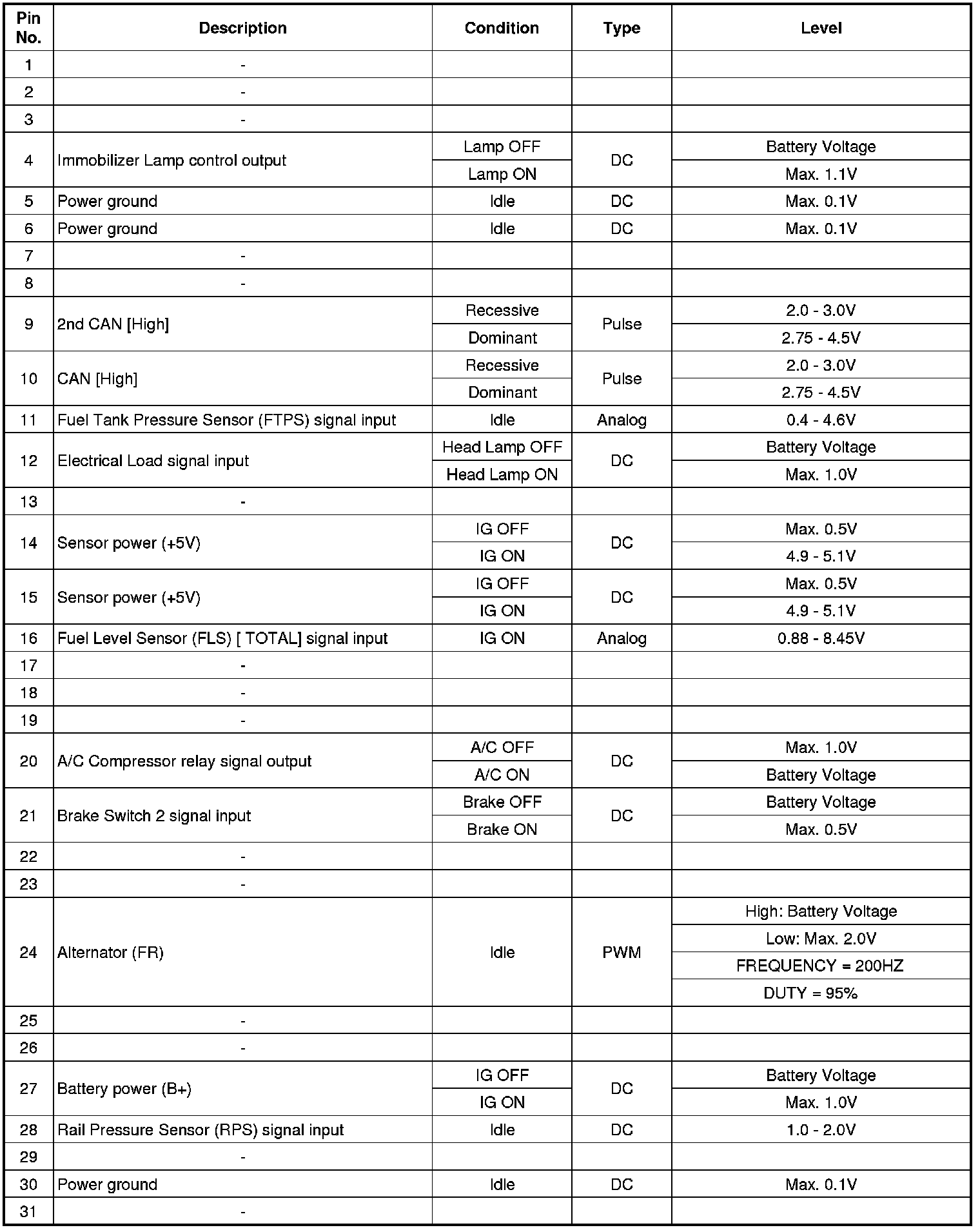 ECM Terminal Input/Output Signal