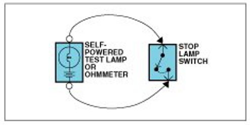 An ohmmeter can be used in place of a self-powered test lamp.