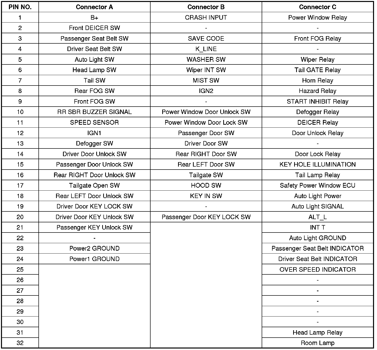 G. All doors Unlock in the case of IGN key separation.