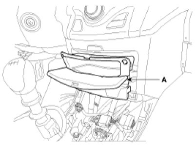 4. After loosening the mounting clips, then remove the center fascia lower tray (A).