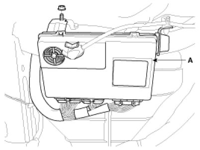 5. Remove the body control module (A) after loosening 1 bolts and disconnecting connector.