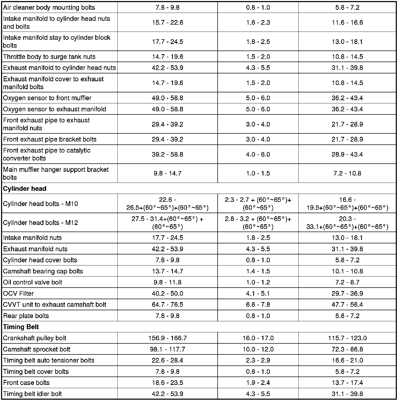 Tightening Torques