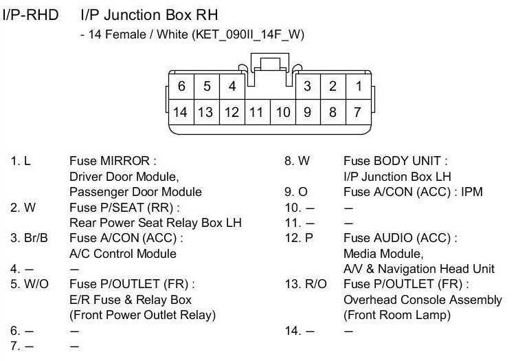 I/P-RHD I/P Junction Box RH: