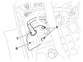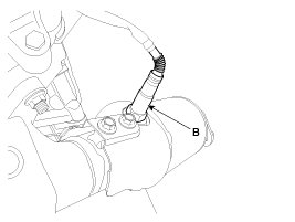 5. Remove the heated oxygen sensor (C) with the spanner after lifting the heater protector (B).