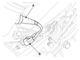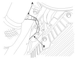 4. Remove the heater protector (B) from the catalytic converter after removing the bolt (A).