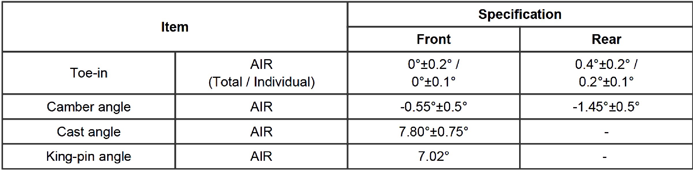 Wheel Alignment Specifications
