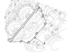The dowel pins on the cylinder block and holes on the timing chain lower cover should be used as a reference in order to assemble the timing chain lower cover to be in exact position.