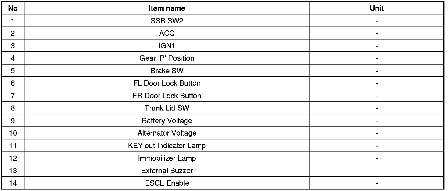 1. SMART KEY unit Input problem : switch diagnosis