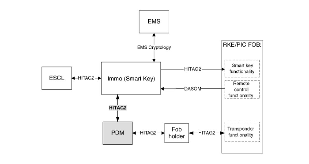 It collects information about vehicle status from other modules (vehicle speed, alarm status, driver door open.), read the inputs (e.g. SSB, Lock Button and PARK position Switch), controls the outputs (e.g. exterior and interior antennas), and communicates with others devices via the CAN network as well as a single line interfaces.
