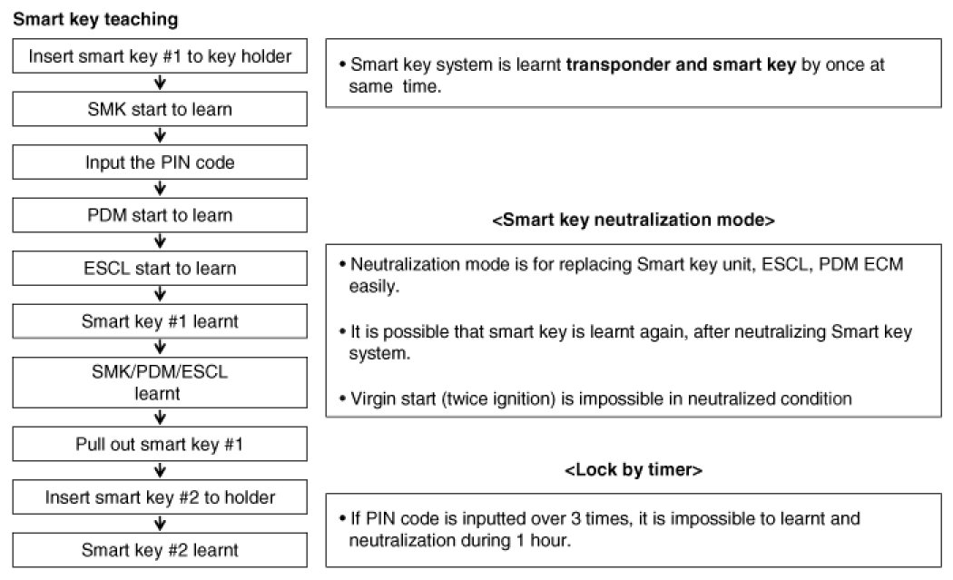 Starting is possible by following process after replacing new smart key unit , PDM, FOB key or ESCL.