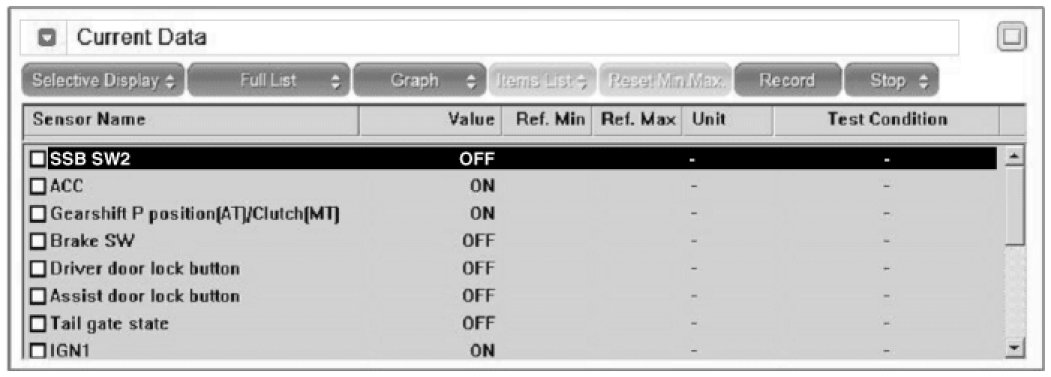 1. SMART KEY unit Input problem : switch diagnosis