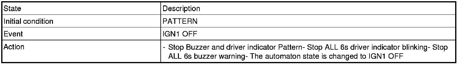 (1) When Driver Door SW is ON at the status of KEY IN ON, Buzzer will be outputted per 0.6sec continuously.