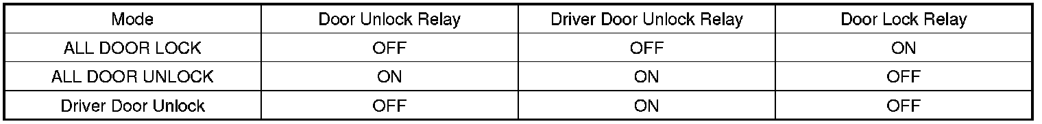(7) Output Door Unlock Relay once for 1s when Driver Door SW is closed within 0.5s since Driver Door Unlock SW is changed from UNLOCK to LOCK during KEY IN ON.