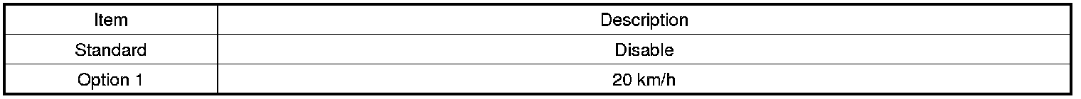 (1) AUTO DOOR LOCK is classified into non-activation/20km activation/40km activation. And follow the table below for the basic value and selected value of the regional operation SPEC.