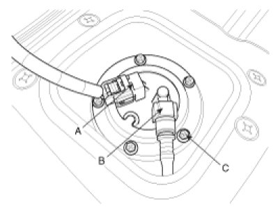 5. Remove the sub fuel sender from the fuel tank after removing the installation bolts (C).
