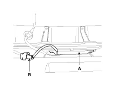 3. Disconnect the antenna connector(B) and remove the exterior bumper antenna(A) after loosening the nuts(2EA).