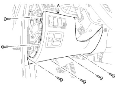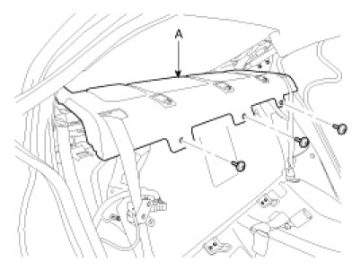 2. Remove the crash pad lower panel (A). Avoid damaging retaining clip.