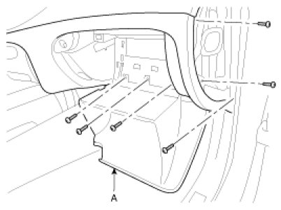 3. Remove the package tray trim (A) after removing the screws.