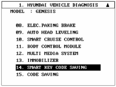 2. Select the vehicle model and then do "Smart key code saving".