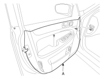 3. Remove the door trim garnish (A) after removing the screws inside the door trim.