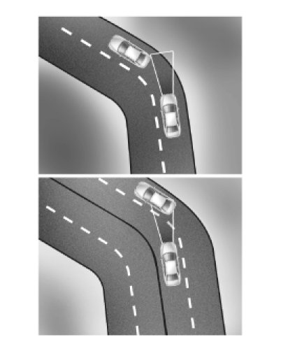 - In front of you, vehicles moving with a frequent lane change may cause a delay in the system's reaction or may cause the system to react to a vehicle actually in adjacent lane. Always look ahead cautiously to prevent unexpected and sudden situations from occurring.