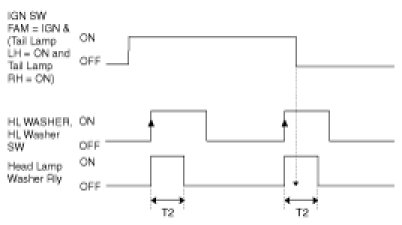 2. In case of (IGN Switch FAM = IGN & Head Lamp Low Relay=ON) status, if washer Switch input is detected more T1 time, head lamp washer output is turned ON.