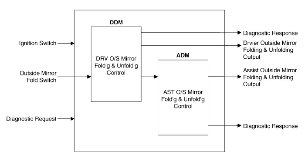 Fold/Unfold is controlled by Assist Outside Mirror Fold/Unfold command from DDM via CAN communication.