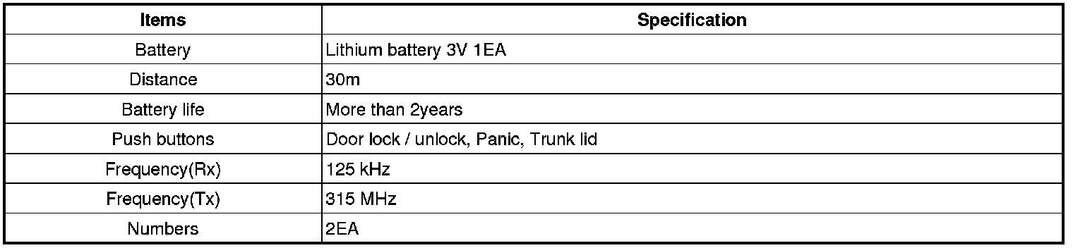 Keyless Starting System: Specifications
