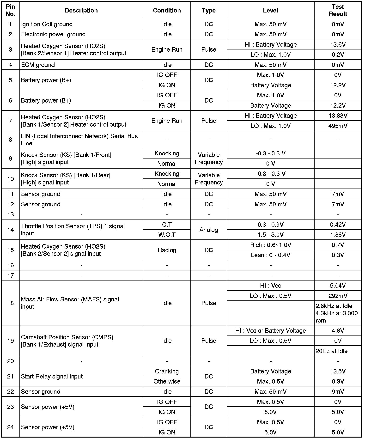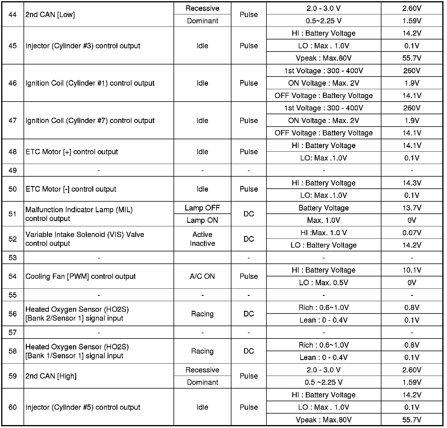 ECM Terminal And Input / Output signal