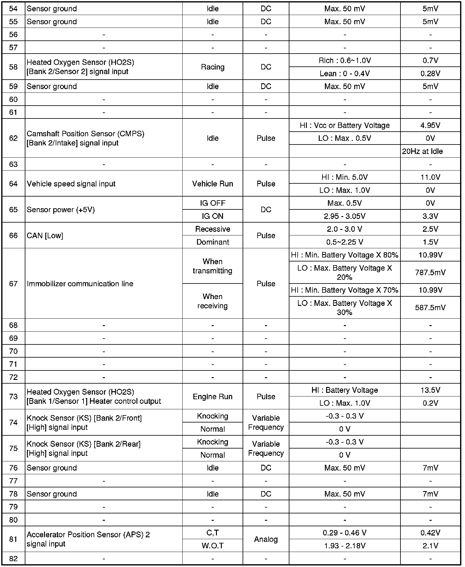 ECM Terminal Input/ Output signal