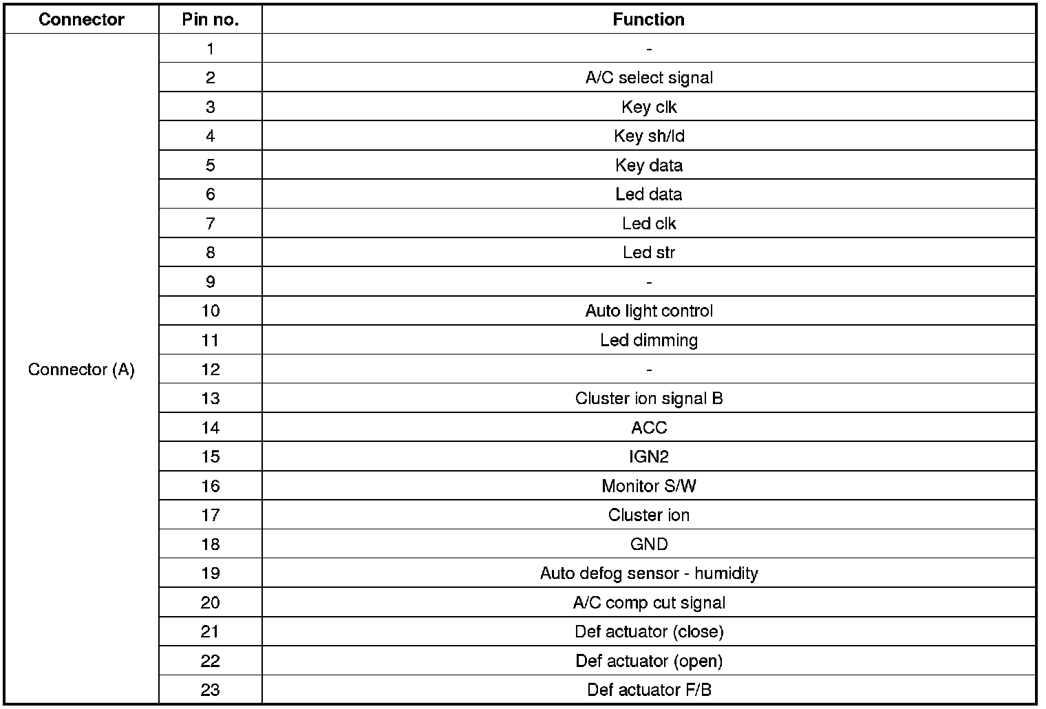 Connector pin function