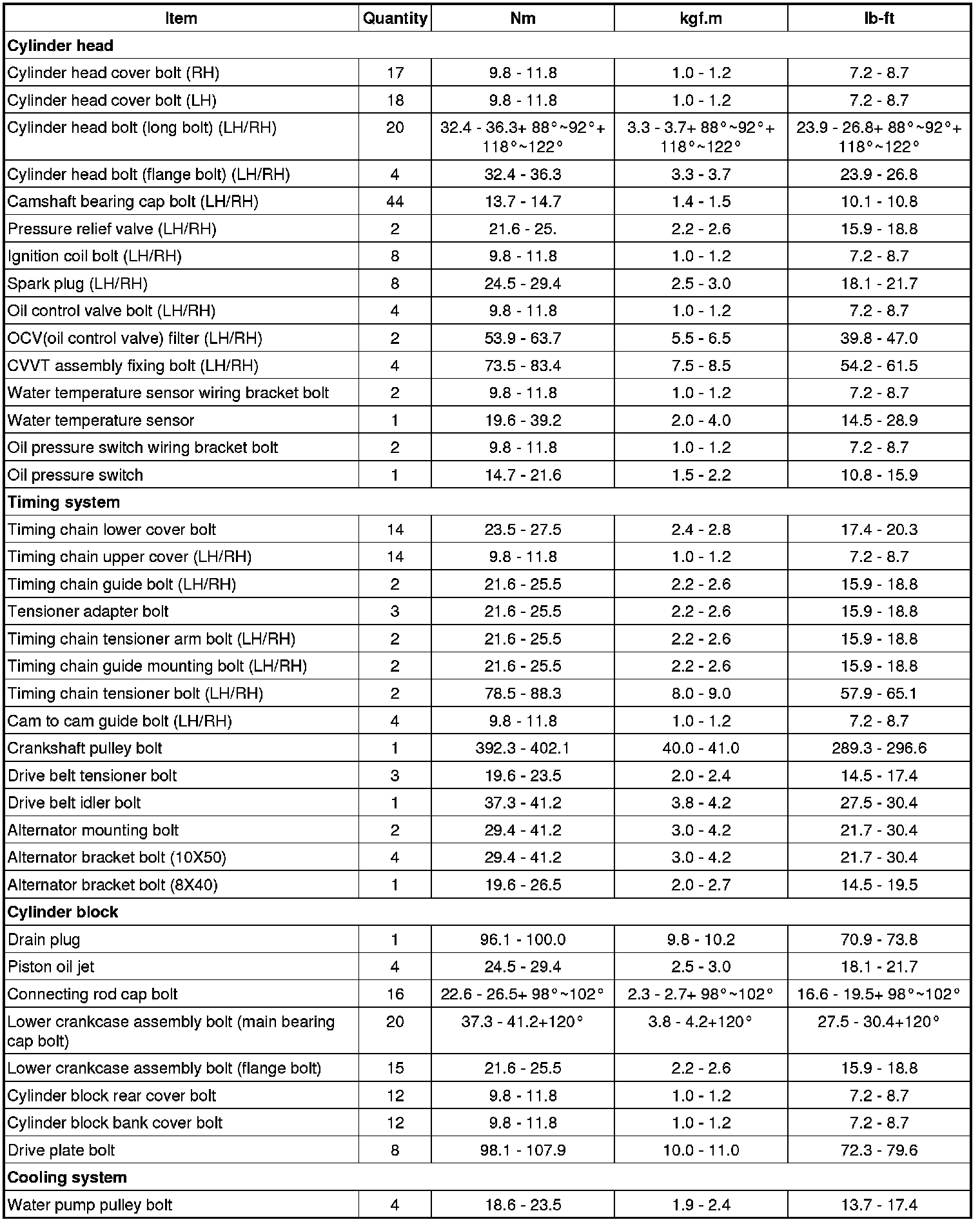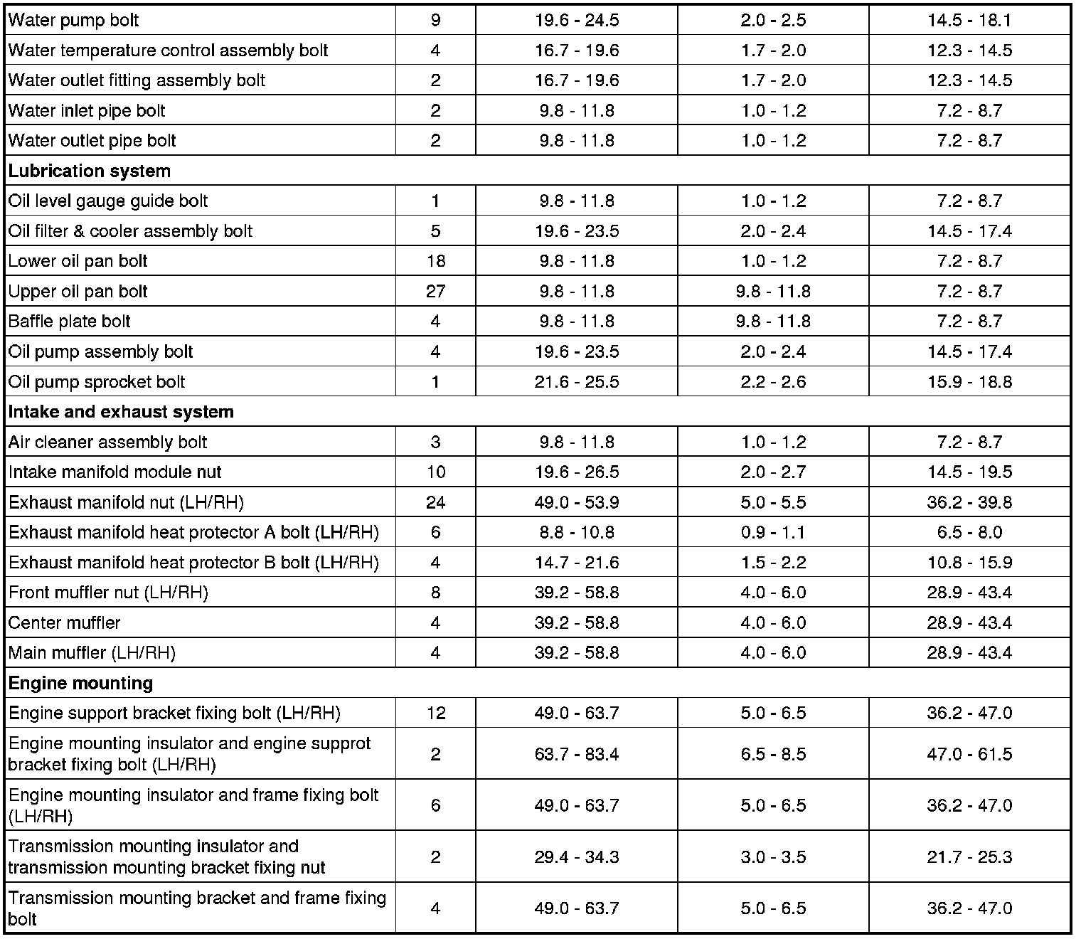 Tightening Torques