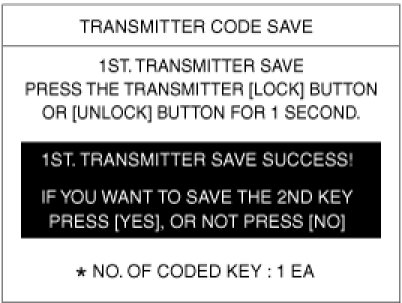 4. If the doors lock and unlock, the transmitter is O.K, but if the doors don't lock and unlock, register the transmitter code, then try to lock and unlock the doors.