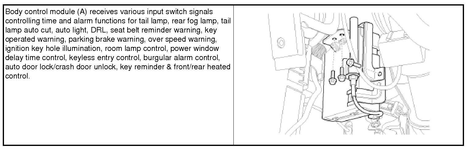 Home >> Hyundai >> 2012 >> Santa Fe FWD V6-3.5L >> Repair and Diagnosis >> Body and Frame >> Body Control Systems >> Body Control Module >> Description and Operation