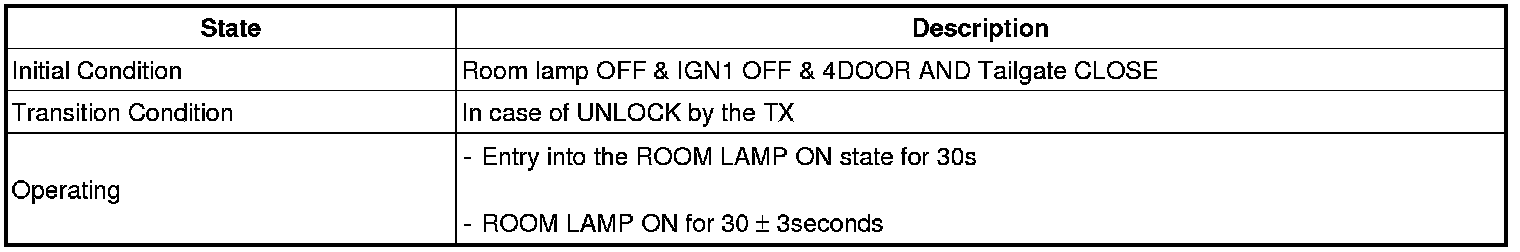 (3) If it is in state of that KEY IN SW is IN & assist's DOOR is OPEN & assist's DOOR UNLOCK SW is LOCK, and after 0.5s, and then perform the ALL DOOR UNLOCK output for 1 second.